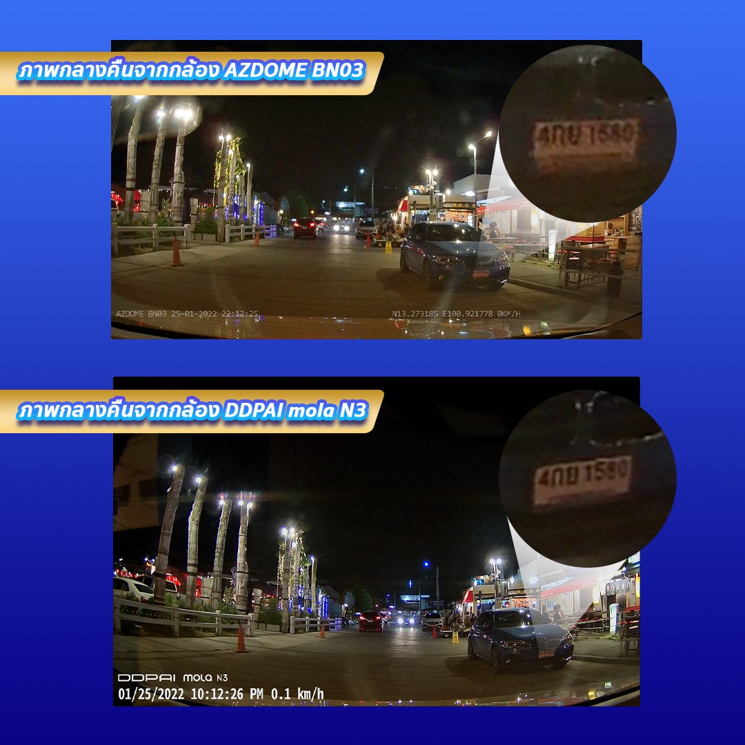 จากภาพที่บันทึกได้จะเห็นว่าทั้งกล้องติดรถยนต์ AZDOME BN03 และกล้องติดรถยนต์ DDPAI MOLA N3 ที่ติดเป็นกล้องหลังนั้นภาพที่ได้คือดีมาก สีสันดี สวย แถมสว่างแล้วก็คมชัดมาก ๆ เห็นป้ายทะเบียนรถยนต์คันหลังได้อย่างชัดเจน ขนาดมีเงาของคอนโซนท้ายรถยนต์ติดไปในภาพก็ยังคงคมชัดอยู่ ซึ่งโดยรวมถือว่าดีมาก ๆ นั่นเองค่ะ