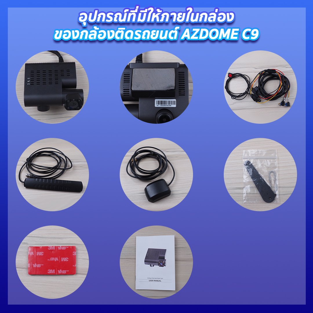อุปกรณ์ที่มีให้ภายในกล่องของกล้องติดรถยนต์ AZDOME C9