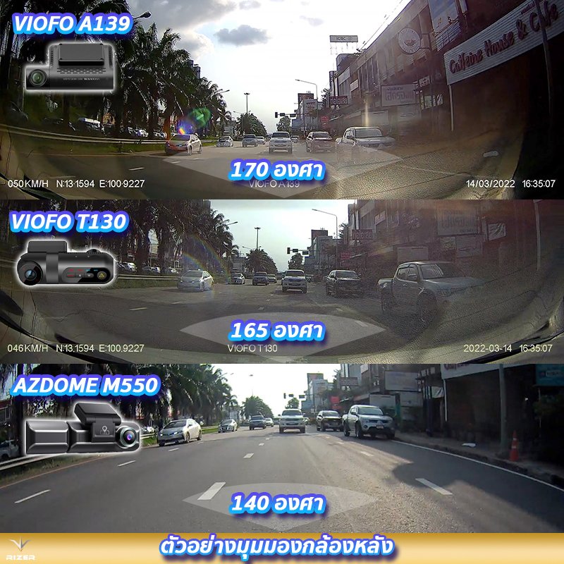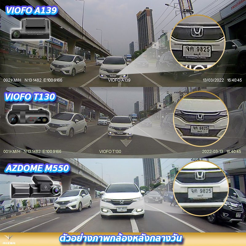 2. ภาพรีวิวใช้งานจริงจากกล้องหลัง VIOFO A139 vs VIOFO T130 vs AZDOME M550