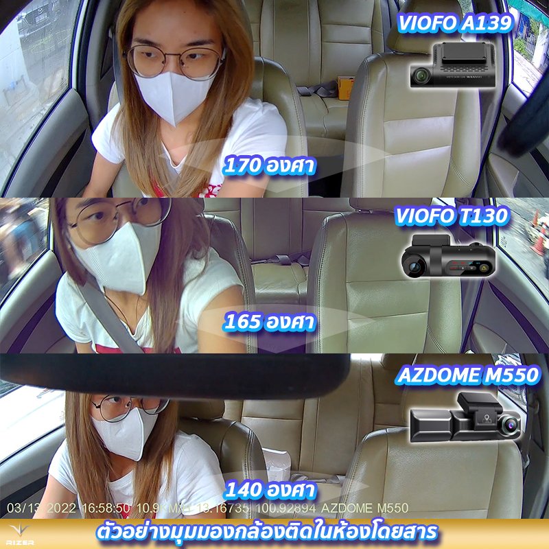 3. ภาพรีวิวใช้งานจริงจากกล้องติดในห้องโดยสาร VIOFO A139 vs VIOFO T130 vs AZDOME M550