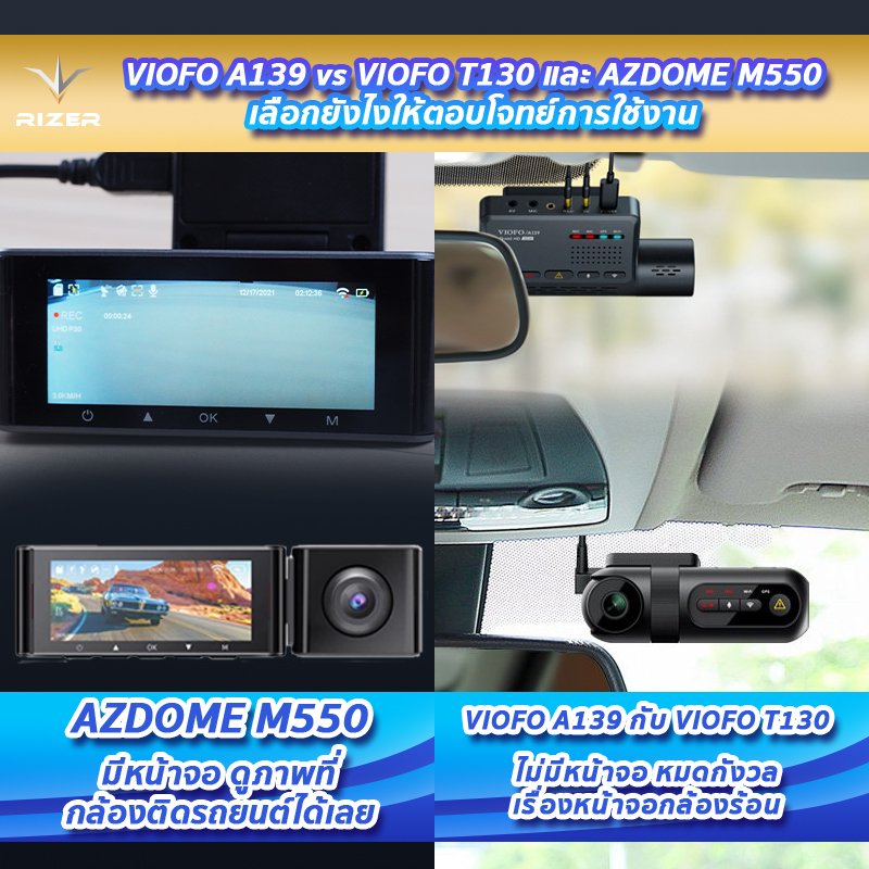 ลักษณะของกล้องติดรถยนต์ VIOFO A139 vs VIOFO T130 vs AZDOME M550