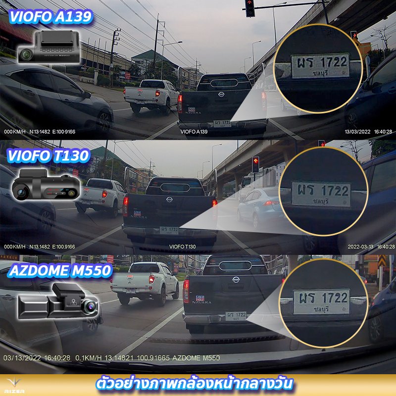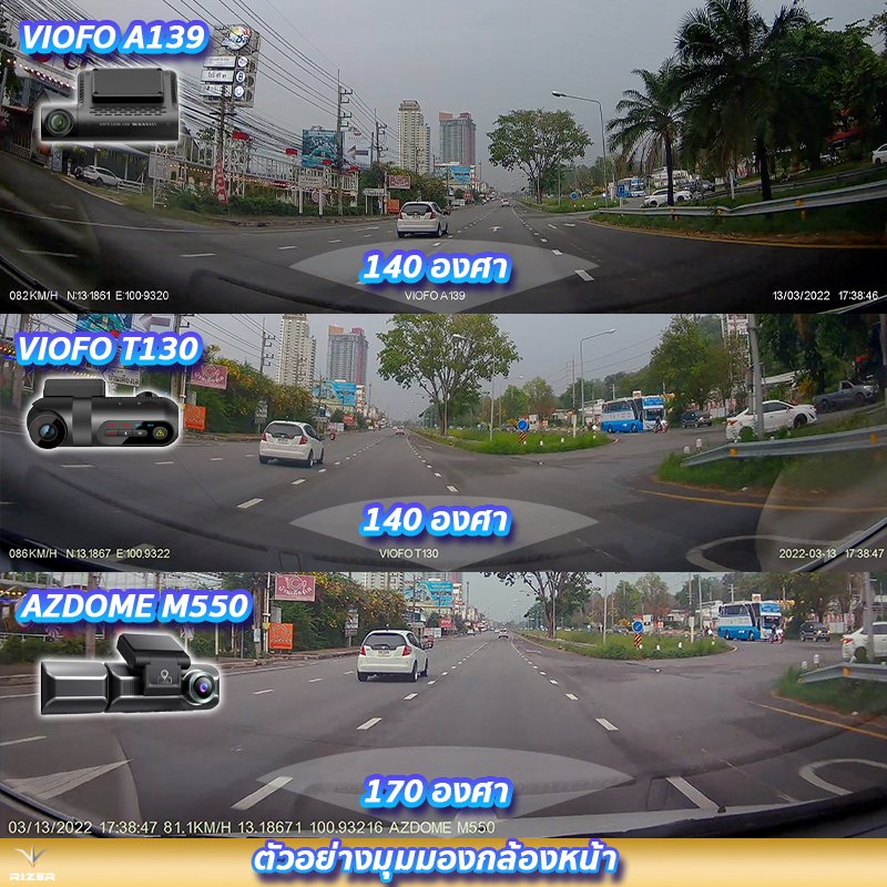 ภาพรีวิวใช้งานจริงของ VIOFO A139 vs VIOFO T130 vs AZDOME M550