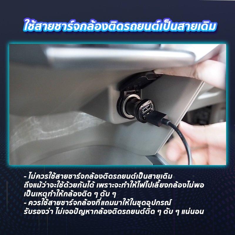 ดังนั้นทุกครั้งที่ซื้อกล้องติดรถยนต์ตัวใหม่มา แนะนำให้เดินสายชาร์จกล้องติดรถยนต์เป็นสายชาร์จที่แถมมาในชุดอุปกรณ์ เพราะเป็นสายชาร์จที่ตรงรุ่น เมื่อสายชาร์จตรงรุ่นก็จะจ่ายไฟให้กล้องติดรถยนต์ได้อย่างเต็มประสิทธิภาพค่ะ