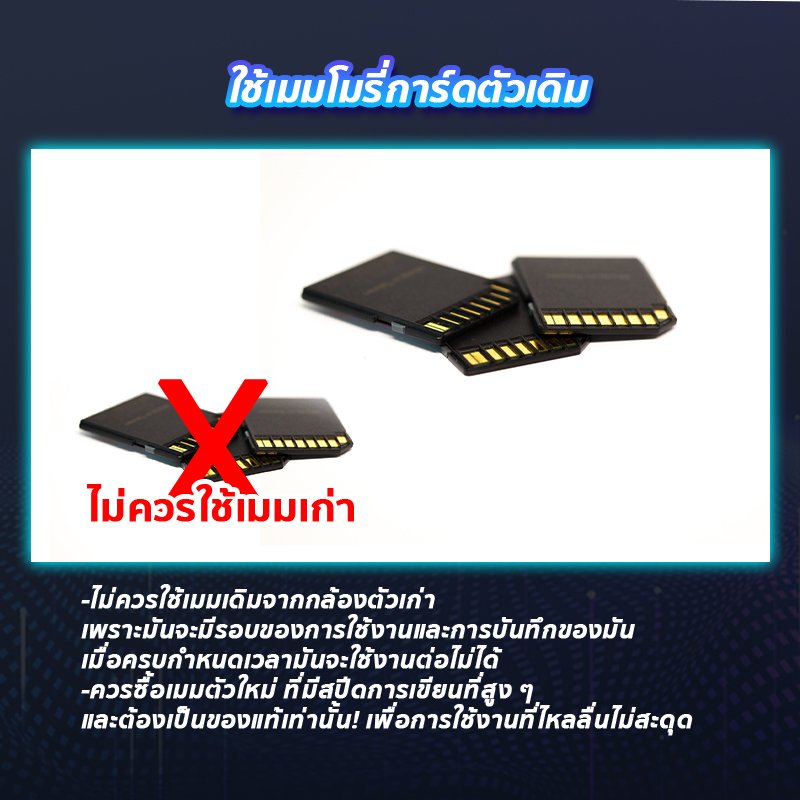ดังนั้นเมื่อซื้อกล้องติดรถยนต์ตัวใหม่แล้วก็แนะนำให้ซื้อเมมโมรี่การ์ดตัวใหม่ด้วย และก็ควรที่จะเลือกซื้อเมมโมรี่การ์ดที่มีสปีดการเขียนสูง ๆ และของแท้เท่านั้น!ค่ะ