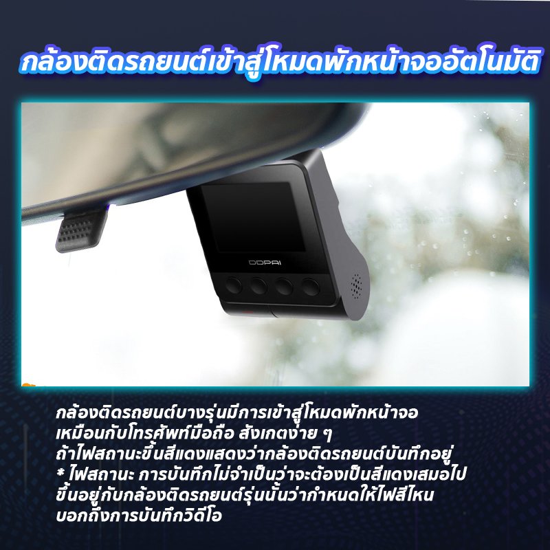 แต่แล้วเราจะรู้ได้ยังไงว่าที่หน้าจอมันดับไปเป็นเพราะพักหน้าจอ หรือดับจริง ๆ วิธีสังเกตก็ให้ดูที่ไฟสถานะของกล้องติดรถยนต์ค่ะ โดยปกติกล้องติดรถยนต์ทุกรุ่นจะมีไฟสถานะบอกการทำงานของกล้องติดรถยนต์อยู่แล้วและส่วนมากไฟสถานะก็จะขึ้นเป็นสีแดงเพื่อบอกให้รู้ว่ากล้องติดรถยนต์ทำการบันทึกวิดีโออยู่นั่นเองค่ะ