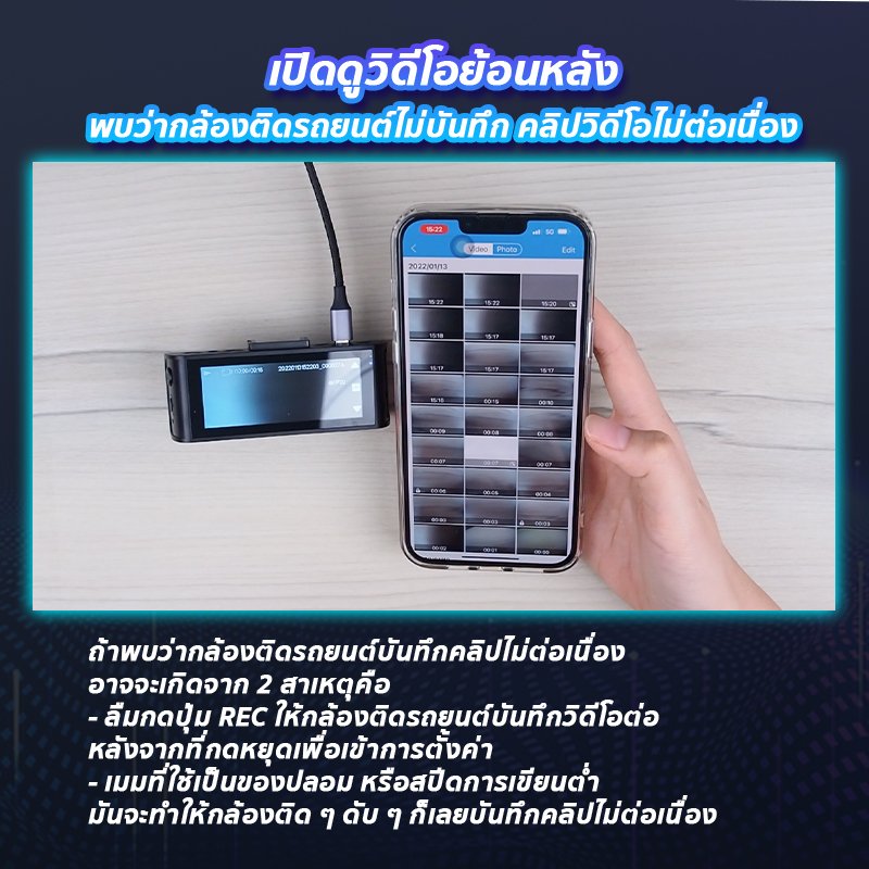 4. เปิดดูวิดีโอย้อนหลัง พบว่ากล้องติดรถยนต์ไม่บันทึกคลิปวิดีโอไม่ต่อเนื่อง
