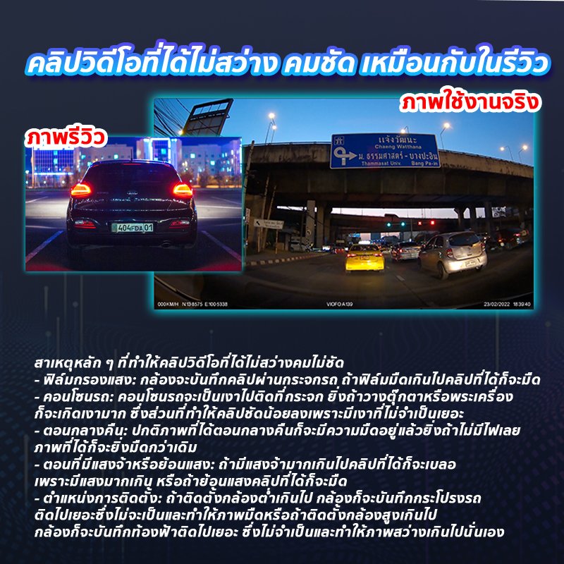 สำหรับคลิปวิดีโอที่หลาย ๆ คนได้จากกล้องติดรถยนต์ตอนใช้งานจริง ๆ นั้นทำไมไม่ชัดเหมือนกับที่เห็นในรีวิวเลยซึ่งตรงนี้มีสาเหตุหลัก ๆ เลยอยู่ 2 สาเหตุคือ