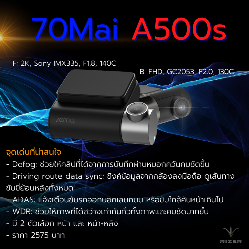จุดเด่นทั่วไปกล้องติดรถยนต์ 70Mai A500s