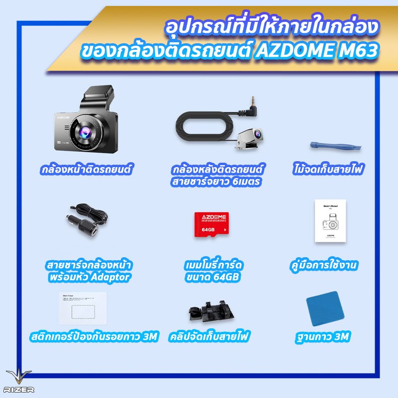อุปกรณ์ที่มีให้ภายในกล่องของกล้องติดรถยนต์ AZDOME M63