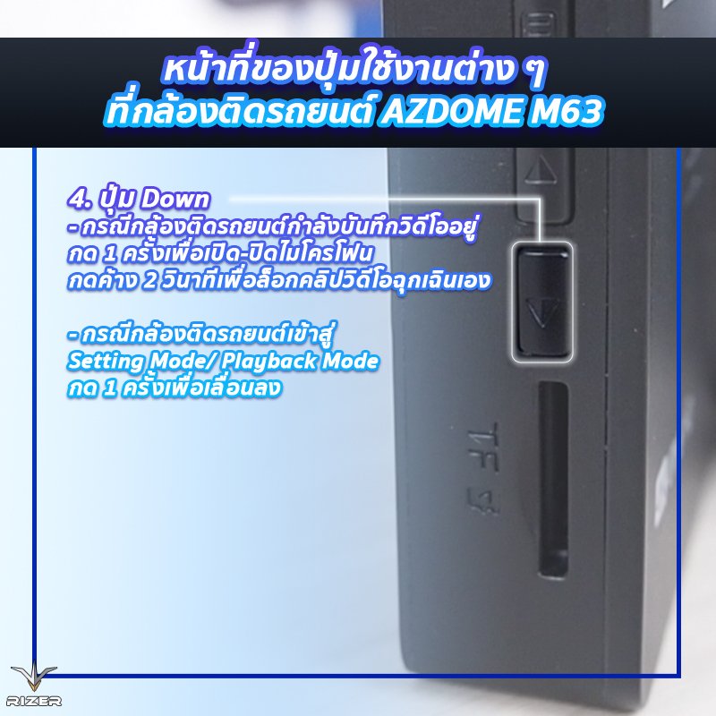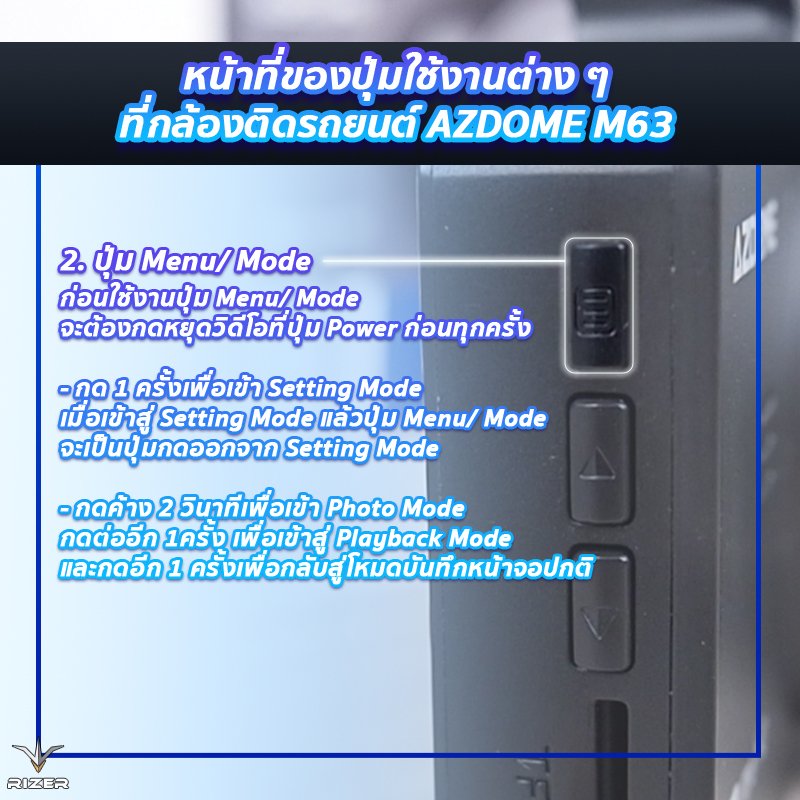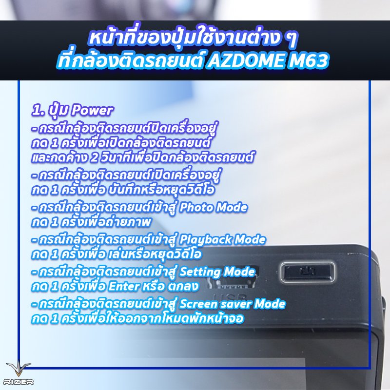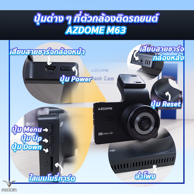 อธิบายหน้าที่ของปุ่มใช้งานต่าง ๆ ที่กล้องติดรถยนต์ AZDOME M63