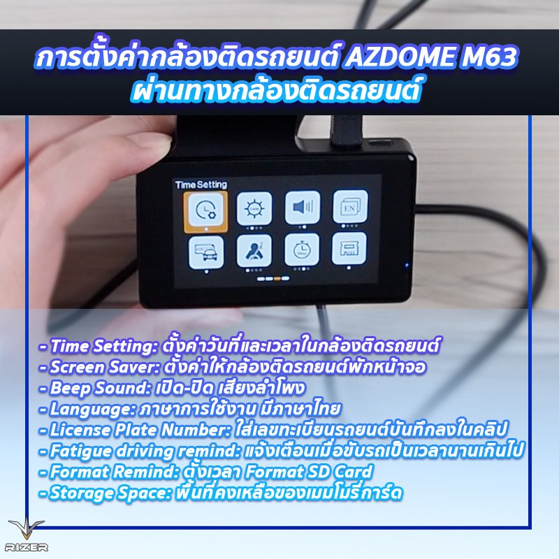 - Time Setting: ตั้งค่าวันที่และเวลาในกล้องติดรถยนต์
