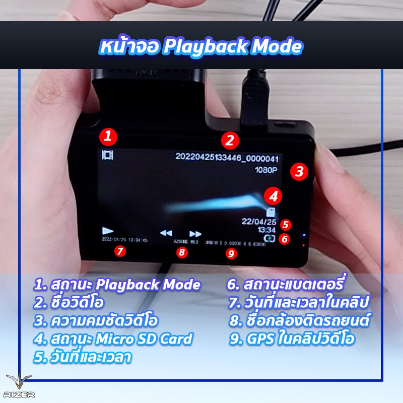 อธิบายหน้าจอกล้องติดรถยนต์ AZDOME M63 หลังจากเข้าสู่ Playback Mode
