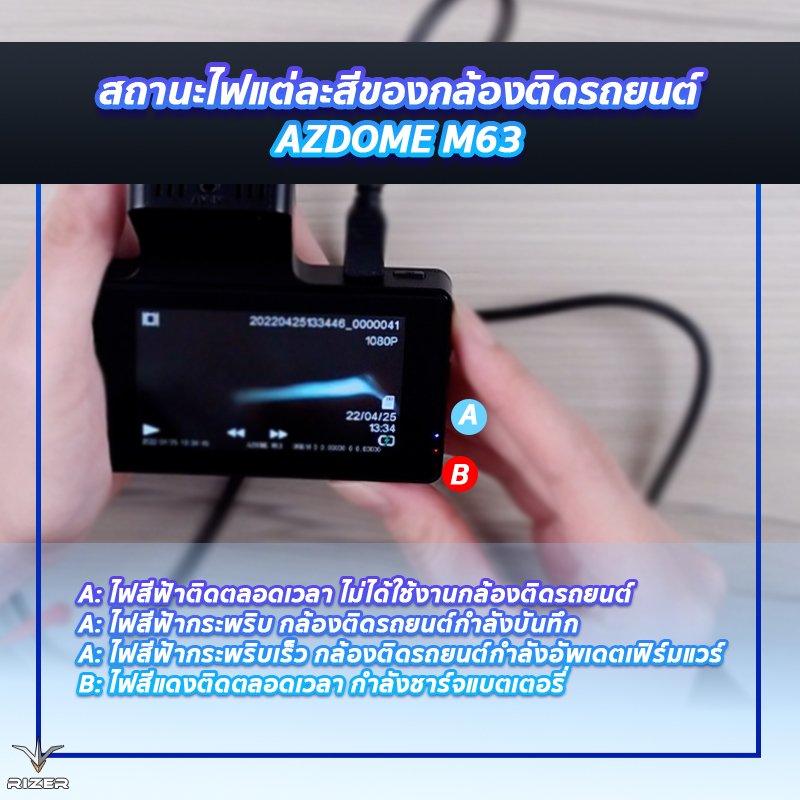 อธิบายสถานะไฟแต่ละสีของกล้องติดรถยนต์ AZDOME M63