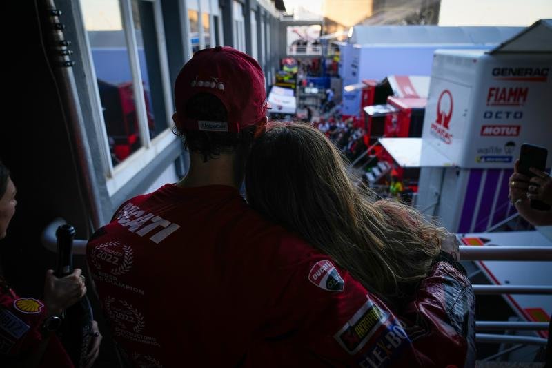 ภาพอ้อมกอดที่แสนอบอุ่นของฟรานเชสโก บันญาญา และแฟนสาว ที่บาเลนเซียหลังคว้าแชมป์โลกสมัยแรกในฤดูกาล 2022