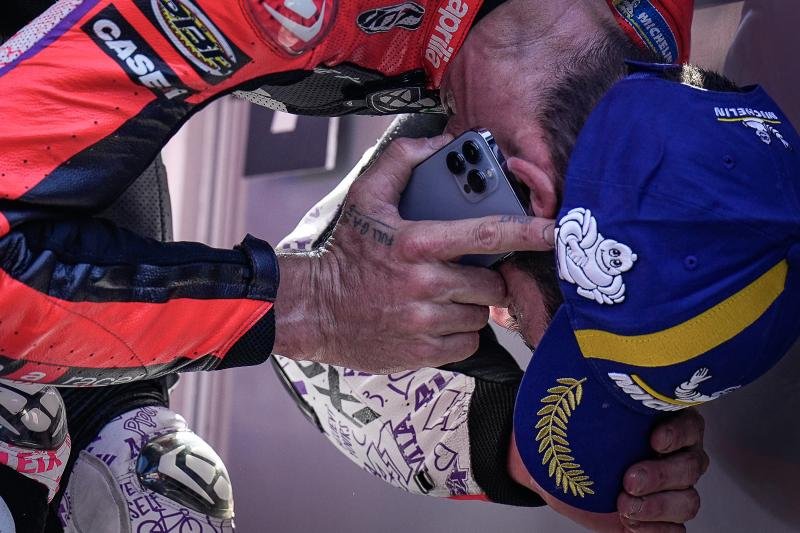 อเล็กซ์ เอสปาร์กาโร นักบิดจากทีม Aprilia Racing โทรหาครอบครัวที่ประเทศสเปนหลังคว้าชัยชนะครั้งแรกในระดับพรีเมียร์คลาส