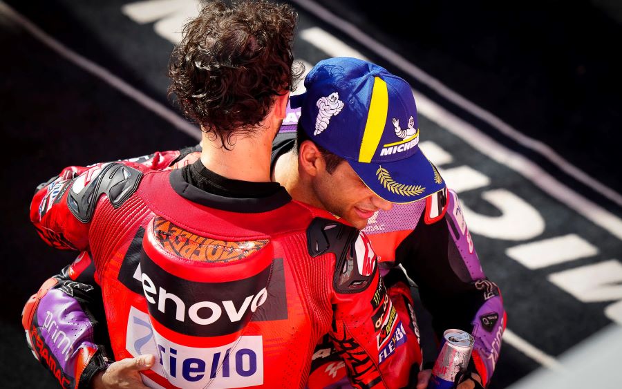 'เป็กโก้' ฟรานเชสโก บันญาญา นักบิดอิตาเลียนจากทีม Ducati Lenovo เตือน ฆอร์เก มาร์ติน นักบิดสแปนิชจากทีม Prima Pramac Racing ว่า ความประหม่าอาจทำให้พลาดได้!