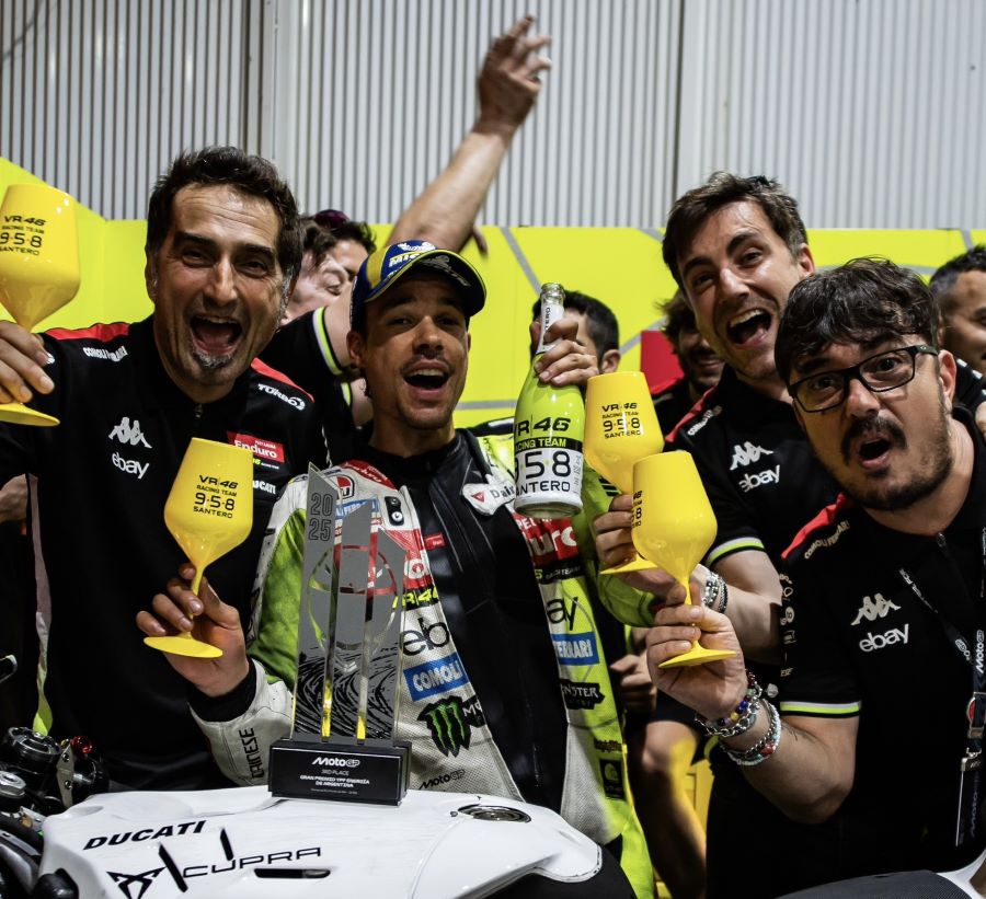 "วันนี้เป็นวันที่พิเศษสำหรับผม สำหรับทีมของเรา สำหรับ VR46 และสำหรับเขา มันไม่ใช่สุดสัปดาห์ที่ง่ายเลย เมื่อวานเขาป่วย แต่ยังไงก็ตามเขาจบการแข่งขันที่อันดับ 3 และผมคิดว่ามันเป็นไปได้ที่เขาจะทำผลงานในฤดูกาลนี้ได้ดี"