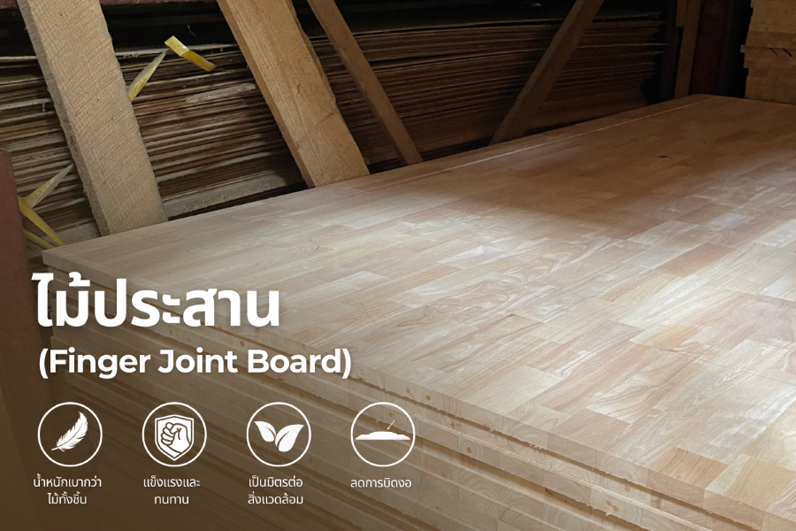ไม้ประสาน (Finger Joint Board) คือ แผ่นไม้ที่ผลิตจากการนำไม้เนื้อแท้ชิ้นเล็ก ๆ มาประสานกันด้วยรอยฟันปลา (finger joint) โดยใช้กาวคุณภาพสูง จากนั้นจึงผ่านกระบวนการอัดแน่นเป็นแผ่นเดียวกัน ซึ่งไม้ประสานให้ความแข็งแรงและทนทานสูงกว่าการใช้ไม้จริงทั้งแผ่น เพราะผ่านการอบแห้ง ลดการบิดงอและการขยายตัวจากความชื้น นอกจากนี้ยังสามารถควบคุมขนาดและความยาวได้หลากหลายตามต้องการ